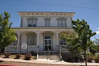 In 1971 the house was moved to the grounds of the Convention Center, on the corner of Kietzke Lane and Virginia Street, and in 2004 it was moved again, to its current location.[2] The house is 36 by 36 feet (11 m × 11 m) and has a hipped roof with a widow's walk. It was wrapped on three sides by a veranda, which was lost in the move, but which was intended to be replaced.[3] Despite its having been moved, it was listed on the National Register of Historic Places in 1972.[1]
