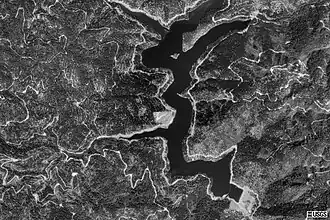 Lake McCloud is a reservoir on the McCloud River in Northern California.[3] The lake forms behind an earthen dam finished in 1965 by the Pacific Gas and Electric Company to control water flows and for generating hydro-electric power.[1] McCloud Dam (National ID # CA00416) is 235 feet (72 m) high, 630 feet (190 m) long at its crest, and impounds a maximum capacity of 35,200 acre-feet (43,400,000 m3).[4]