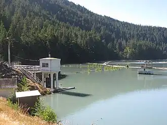 The lake was formed in 1927 with the completion of the dam and after the lowland forest that occupied the river bottom was clear-cut. With no fish passage facilities, the dam blocked passage of anadromous Pacific Salmon from the upper 50+ miles of the Elwha watershed located within Olympic National Park.