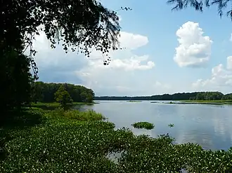 Cypress and willow trees line the lake, and egrets, wood storks, and limpkin are often found foraging along the shoreline, often on invasive apple snails.[2] Bass fishing in the lake can be excellent, and a boat ramp is provided at the Gil A. Waters Lake Munson Preserve Park,[3] with another located at the dam.[4]