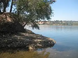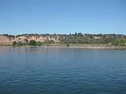 Surrounding this narrow lake are foothills, plateaus, cliffs and river canyons.[3] A dense 14-mile-long (23 km) riparian ecosystem encircles the lake.[3] The Lake Natoma Bluffs stand 300 feet (91 m) and line the lake from Black Miners Bar to Mississippi Bar.[4]