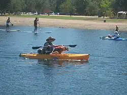 Lake Natoma was first ready for the public in 1958.[4] The common water activities are kayaking, rowing, canoeing, swimming, water skiing, sailing, and fishing. Land activities include hiking, biking, picnicking, jogging, and horseback riding.[3] Educational activities are also available, including information about historical sites near Lake Natoma and Folsom Lake, like the common fish that spawn in the American River, the history of the California Gold Rush, and Native American life before the arrival of the Europeans.[3]