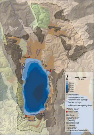 ![]() Map of the Ohrid Basin showing major hydrological and geological features | |
