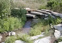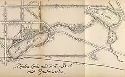 Lake Phalen was named after an early Irish settler of Saint Paul, Edward Phelan. Phalen built a cabin near Phalen Creek in Swede Hollow. Phalen Creek travels from Lake Phalen and drains into the Mississippi River just north of Lambert's Landing. The lake that was drained by the creek became known as Phalen's Lake despite Phelan never living near its shores.[14]: 639–640  The Saint Paul Water Company set up a supply plant at Lake Phalen in 1869 and the lake was used as Saint Paul's primary source of water until 1913.[14]: 155  John Fletcher Williams, a local historian, wrote in 1876 "It is a disgrace, that the name of this brutal murderer has been affixed to one of our most beautiful lakes - one that supplies our households with water."[15][16] Phalen had been accused of murdering his partner, John Hays in 1839, however another man later confessed to Hays' murder.[17]