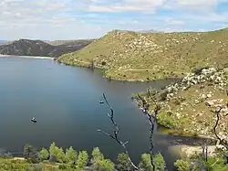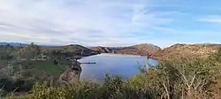 Lake Poway is a dam and reservoir in Poway, California, United States. The dam is owned by the City of Poway and was constructed between 1970 and 1972 with the purpose of storing and supplying water, and providing recreational facilities to the community. A $3.2-million bond issue for construction of the dam was rejected by voters in 1964 and 1966, but passed with 87 percent in favor in 1969. Year-round fishing for trout, bass, catfish, sunfish and bluegill is available at the lake.