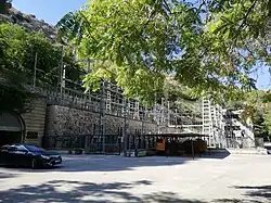 The Paul Arcache hydroelectric power plant is the biggest hydroelectric plant in Lebanon, with an overall power supply of 108 MW. It is located in Al-Awwali near the Awali river 228.5 m (750 ft) above sea level. It was established in 1965. The plant also draws water from the Qaroun lake after it comes out of the Abdel Al plant through a 17 km (11 mi) tunnel where its joined by water from different springs and streams such as Ain el Zarqa and Nahr el Cheta. The tunnel crosses Jabal Niha-Jezzine into the Anane basin located above the plant at 630 m (2,070 ft) above sea level.[8]