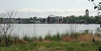 Lake Rhoda[2] is a natural lake in the town of Lakeside, Colorado, located between Interstate 70 and West 44th Avenue. Originally named West Berkeley Lake, it was renamed for Rhoda Krasner by her father, Ben Krasner, who rescued Lakeside Amusement Park from bankruptcy during the Great Depression.
