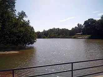 To the west and southwest of the lake are the remains of the Greenspring Branch railroad and the Northern Central Railroad, which was formerly the Baltimore and Susquehanna Railroad. The remains include the station/junction, known as the "Relay House", which burned in 1869.[11][10][notes 1]