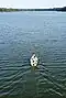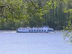 The forested and coastal areas provide feeding and breeding grounds for numerous bird species, mainly cormorants, swans, and herons (including great egrets), along with members of the grebe, duck, gull, and tern families. Wet and shaded areas, particularly near channels connected to the lake, are inhabited by kingfishers. The lake’s fish population is dominated by perch, roach, bream, tench, pike, and zander, with increasingly rare eels also present.[23] Other animals typical of northern Polish lake ecosystems can be found in the coastal and nearshore zones, including beavers, frogs, and toads such as the common toad and moor frog, as well as crayfish and various species of mussels, including the common freshwater mussel.