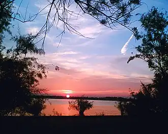 Ovidiu Island is a small island on the west side of the lake, 500 m (550 yd) from the town of Ovidiu.[1] On the east side of the lake is the resort town of Mamaia, which lies on a strip of land 8 km (5.0 mi) in length and only 300 m (330 yd) in width, between the Black Sea and Lake Siutghiol.