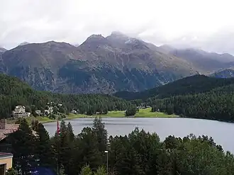 ![]() Lake St. Moritz and surrounding mountains from St. Moritz-dorf | |
