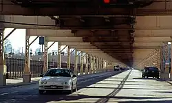 ![]() The Green Line elevated tracks run above Lake Street in Chicago. April 2002 | |