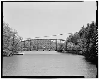 The Green River was dammed in 1920 by the Blue Ridge Power Company, now part of Duke Energy, to provide power for Henderson County and the Greenville area, creating Lake Summit. Prior to the damming, the land now under the water was occupied by some small number of family homes and a gristmill; these were demolished or moved as part of the construction process. The land around the lake was parceled up and sold to families.[2] In 1921, a bridge was constructed across the midsection of the lake. In 1983, the state DOT replaced the old truss bridge crossing the river with a new concrete bridge nearby, preserving the old bridge as a walking path.[3][4]