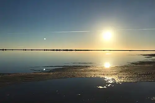 In the mid-2010s, the lake became a tourist mecca, particularly for Chinese.[4] It is a popular location for photographers and social media users, who take photographs of the lake's mirror-like surface during winter, when ground water percolates to the surface and inflows arrive from the Avoca River/Tyrrell Creek system.
