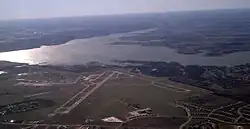 ![]() Aerial view of Lake Waco and dam (circa 1960s). | |