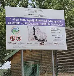 Lake Zerrouka is a Moroccan lake situated within the boundaries of the Tizguite commune in Ifrane Province, approximately 1 km (0.62 mi) away from Ifrane. The lake is a popular destination for tourists from various Moroccan towns, offering opportunities for recreation and fishing. The lake is divided into two distinct sections, designated as Lake Zerrouka 1 and Lake Zerrouka 2.[1]