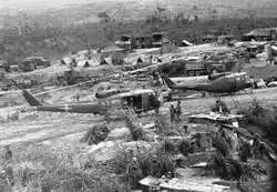Helicopters and supply vehicles at Khe Sanh, 12 February 1971