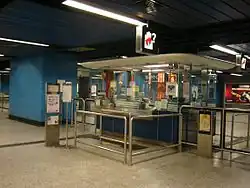 The concourse is the first floor down the escalators from the hillside exits. It is divided into two parts: the paid area and the non-paid area. The paid area has escalators down to the platforms and has a postbox, while the non-paid area links the exits and houses a Hang Seng Bank branch.