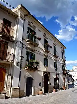 • Ducal Palace, located in Piazza Umberto I. The palace was built at the behest of the Di Capua dukes in Cinquecento. In 1756 the palace was property of the D'Aquino family of Caramanico. Little remains of the original structure except some cantonal stone and a few windows. The building has three levels. The cantonal consists of a pilaster which is surmounted by a circular element supported by shelves. The window placed on a cantonal has a stone exhibition with piers with floral motifs placed on a window sill supported by shelves. The frame on which the entablature ends is supported by several shelves with an acanthus leaf decoration. The facade has a scarp profile.[6]