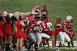 As of 1975 about 33% of Lamar's students were black.[16] Many black parents sent their children to Lamar because of the school's strong academic reputation. By 1975 black students became members of clubs and the cheerleader corps of Lamar, and the student council president and "Lady of Lamar" was black. Curtis wrote that black students who did not wish to associate with whites often did not participate in the social environment while whites who did not wish to associate with blacks were still able to participate in that environment.[49] Some black students emphasized with friends attending other schools who criticized them for going to Lamar that they only attended the school.[49] Curtis wrote that some Lamar white students felt that "going to school with blacks [was] a duty they must perform, a quirk of history they must indulge."[49]