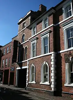 The present building dates from 1861 and was designed by Nantwich architect Thomas Bower.[1][2] The Lamb Hotel is described in an 1874 directory as a "Commercial Inn and Posting House", one of two in the town (the other being the Crown).[10] Around 1900, the inn was still providing horses for the fire engine, even though the engine house had by then moved to Pillory Street.[4] It remained in use as a public house until 2002.[4]