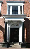 The windows of the three-storey building have moulded stone surrounds. The ground-floor windows have stone sills, arched tops and keystones with decorative motifs, including a lamb's head. The first-floor windows have stone cornices; the central window at this level, above the portico, has three lights.[1] The central bay has a portico with Tuscan columns flanking the main entrance, which is reached by a low flight of stone steps and features an arched head.[1][2]