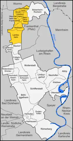 The Verbandsgemeinde Lambsheim-Heßheim consists of the following Ortsgemeinden ("local municipalities"):[4]