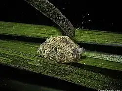 This snail both feeds on ascidians and lays its eggs on them. The colour and texture of the mollusc often closely resemble the surface of the compound ascidian on which it is living, which fact renders the mollusc well-camouflaged.[6] Some individuals have red patches which resemble small colonies of sponge, and others have been observed with the tubercles coloured in such a way as to resemble acorn barnacles. These colourings make it difficult for potential predators to detect the molluscs, and another defensive mechanism is acid-secreting glands in the dorsal epidermis that make the molluscs distasteful to fish.[6]