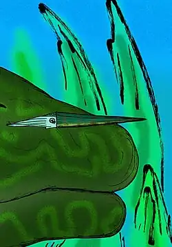 - Arthrophyllum has slender, gradually expanding orthocones or faintly endogastic longicones, the surfaces of which are covered with close spaced sinuous transverse crenulations that form broad dorsal and ventral salients and lateral sinuses. Septa are shallow, sutures straight and transverse. Camerae contain episeptal deposits formed by longitudinal lamellae that radiate inwardly from the chamber walls and increase in bulk adapically so as to completely fill the entire apical chambers. Arthrophyllum was named and described by Beyrich in 1850 and is known from the Lower Devonian of Europe (France, Germany, Turkey). Tentative specimens are known from the Lower Carboniferous.