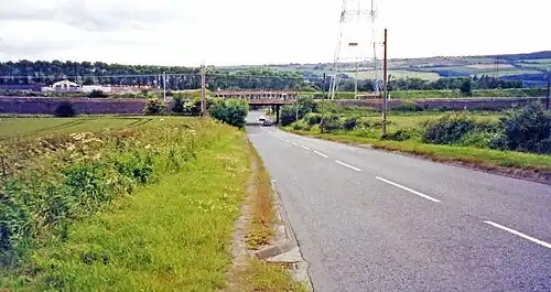 ![]() The site of the station, looking west from Smithy Lane, in 2002 | |||||