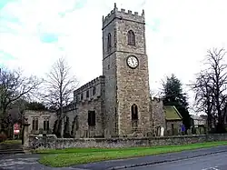 The main Parish church is now known as All Saints but was once called St. Mary the Virgin.[8] The original building dates from the mid 12th Century but was extended in 1284 by Antony Bek, the bishop of Durham. The tower dates from c.1430.[8] Features of interest include the Norman chancel arch, the monolithic columns of the nave (presumably from the Lanchester Roman station) and a Roman altar in the porch.[9]