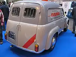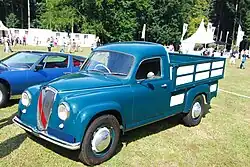 Starting with 1954 Lancia also built light commercial bodies on the Appia chassis, replacing the analogous versions of the earlier Ardea. Three models were offered: the Furgoncino panel van (chassis code C80 or C80S for left hand drive), Camioncino pick-up (C83 or C83S), and an ambulance based on the Furgoncino, the Autolettiga (C86 or C86S). In respect to the saloon, all had shorter final drives, lower horsepower engines, widened axle tracks, upsized 16-inch wheels and larger tyres—and consequently bodywork altered to accept these modifications.[12] With the introduction of the second series Appia in 1954 all three models received upgrades similar to the saloon's, while keeping the body style almost untouched. Commercial variants were not upgraded to third series specifications, as during 1959 they were phased out in favour of a forward control full-fledged van using Appia drivetrains, the Lancia Jolly.[13]