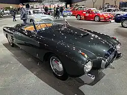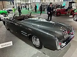 The PF200 was a concept car that debuted on the Pinin Farina (as it was then) stand at the 1952 Turin Motor Show. The show car was built for promotional purposes to generate publicity and was never intended for series production, although Pinin Farina went on to build a further six examples, some open, some closed. The seven PF200s were slightly different from one another, although all featured the signature circular front air intake reminiscent of the North American F-86 Sabre jet fighter. The cars featured side air intakes and six exhaust pipes, while instead of stowing the soft-top behind the seats, like many open cars of the period, Pinin Farina arranged for the PF200's hood to fold down out of sight within the body. The PF200 used the chassis and running gear of the Lancia Aurelia B52.[4]