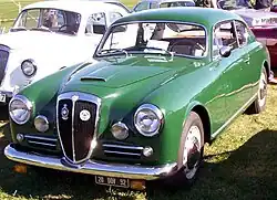 The Lancia Aurelia is a car manufactured and marketed by the Italian company, Lancia, from 1950 to the summer of 1958 — over a course of six series. Configurations included a 4-door saloon/sedan, 2-door cabriolet (B50/B52), 2-door GT coupé (B20), 2-door spider/convertible (B24), and as a rolling chassis for coachbuilders. The Aurelia is noted for using one of the first series-production V6 engines.