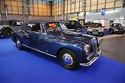 The first prototype of the B50 cabriolet was shown at the 1950 Turin Auto Show. Produced in small numbers, around 265 cars, by cabriolet-specialist Pinin Farina, the B50 Cabriolet was a four-seat comfortable cruiser. It is powered by a 1,754cc engine. The majority of the production was done between 1950 and 1952. Some cars had an improved B52 platform which came with the 2.0-litre engine of the B20/B21. In total Lancia built only 98 B52 chassis, the last of which was delivered in 1953.[3]