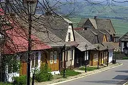 Lanckorona [lant͡skɔˈrɔna] is a village located 30 kilometres (19 mi) south-west of Kraków in Lesser Poland.[1] It lies on the Skawinka river, among the hills of the Beskids, 545 m (1,788 ft) above sea level. It is known for the Lanckorona Castle, today in ruins. Lanckorona is also known for the Battle of the Bar Confederation that took place at the castle and within a 4 km (2 mi) range south of the town borders on 22 February 1771. In recent years, Lanckorona has become a tourist attraction for the well preserved 19th century wooden houses in its centre. The township of Lanckorona was established by Casimir III the Great in 1336, to protect the road to Kraków, following the creation of new regional borders following the homage given by Mieszko I, Duke of Cieszyn to Wenceslaus II of Bohemia in 1291. Lanckorona lost its town rights on 13 July 1933 as its population declined.[2]