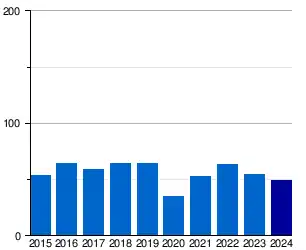 2024 49,671 Decrease 8.9 7,500 Increase 0.3 53 Decrease 36.1
