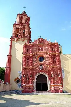 The municipality is home to two of the five Franciscan missions in the Sierra Gorda, which were registered together at a World Heritage Site in 2003.[4] The mission complexes standing today were constructed with stone and mortar under the leadership of Junípero Serra after he took over evangelization of the area in 1750.[3] However, both sites had been Augustinian missions earlier in the colonial period, and the Franciscan missions themselves were founded in the 1740s.[1] After the missions were handed over to regular clergy in 1770, they deteriorated over the centuries. Restoration work on all five churches began from 1979 to 1985, initially focusing on the integrity of the structures and the facades. From 1991 to 1997, restoration of the towns around the missions, including work on monuments, plazas, fountains, building facades, paving streets with stone and more were undertaken. From the late 1990s to the early 2000s, restoration of interiors were done, including to altars, choir areas, organs and paintings.[4] Much of the work was done to encourage tourism to the area, and the work cost anywhere from one to two million pesos for each church.[4][9]