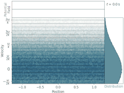 The mechanical N-body description, originally deemed impossible, enables a rigorous calculation of Landau damping using Newton’s second law of motion and Fourier series.[10] Neither the Vlasov equation nor Laplace transforms are required for this derivation. The calculation of the energy (more precisely momentum) exchange of the wave with electrons is done similarly. This calculation makes intuitive the interpretation of Landau damping as the synchronization of almost resonant passing particles.