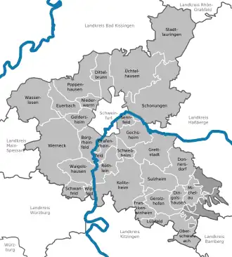 Schweinfurt is a Landkreis (district) in the northwestern part of Bavaria, Germany. Neighboring districts are (from the north clockwise) Bad Kissingen, Rhön-Grabfeld, Haßberge, Bamberg, Kitzingen, Würzburg and Main-Spessart. The district-free city Schweinfurt is surrounded by the district.