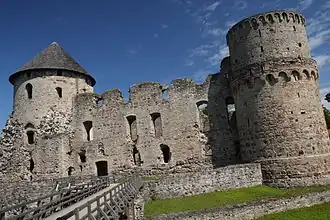 Landmeister in Livland was a high office in the Teutonic Order. The Landmeister administered the Livonia of the Teutonic Order.[1] These lands, Old Livonia, had fallen to the Teutonic Order in 1237 by the incorporation of the former Livonian Brothers of the Sword. The seat of the Landmeister was castle Wenden. The Landmaster's function in Livonia lasted until 1561, when in aftermath of Livonian War the last Landmeister Gotthard Kettler relinquished the northern parts of the Mastery and in the Union of Vilna secularized the part still left to him and, as the Duchy of Courland and Semigallia, took fief from the Polish king and Grand Duke of Lithuania Sigismund II Augustus. The non-recognition of this act by Pope, Holy Roman Empire and the Grand Master of the Teutonic Order had no factual effect.