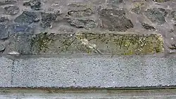 In between the two bleach works in 1858 is located a building with a very ornate walled garden, in all likelihood the dwelling of the works manager and has two dated stones of the marriage stone type, dated 1790 with 'I(J)R and JC' and 1759 respectively. The second stone is badly eroded and any initials are not discernable.[15] This relatively small building also has an access off Threepwood Road via the settlement of Townend.[15] In 1858 no name is given on the map to this dwelling. A plantation or screen of trees is shown lying to the west and a small ruin is shown on the lane to the lower bleach works where it ceases to be straight and runs in an easterly direction.