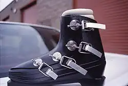 Even if this hot water fitting step wasn't used, strong skiers would wear out their boots in months as the leather softened, and mere weeks if they raced them.[5] This left only a short period of time between the painful break-in period and the time when the boots were too soft to provide good control over the skis.[3] Jean-Claude Killy took to having Michel Arpin ski in his boots while they broke in, giving them to Killy to ski for the few weeks before they wore out. Another solution to improve lateral control was the "long thong", a leather strap wrapped around the boot and lower leg, which came at the cost of eliminating any sort of quick release.[5]