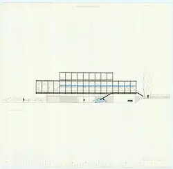 After the war, it was discussed whether the Langelinie Pavilion should be rebuilt to its own design but Copenhagen Municipality ultimately launched an architectural competition for the design of a new building in 1954. The competition was won by Niels and Eva Koppel while other awarded competition entries came from Hennuing Larsen and Jørn Utzon. The latter proposed an 11-floor tower-like structure. Construction of the new Langelinie Pavilion began in 1956 and it was inaugurated on 28 February 1958,[3]