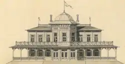 The first Langelinie Pavilion was built at Pinnebergs Reduit in 1884.[1] It was owned by De Forenede Bryggerrier but contained facilities for the Royal Danish Yacht Club. The building was designed by Vilhelm Dahlerup. Dahlerup was also the designer of a new footbridge, Gefion Bridge, which provided a link between the Gefion Fountain and the Langelinie Park across the access road from the south (now Ved Kongeporten). Later he also served as architect for the adjacent Free Port.