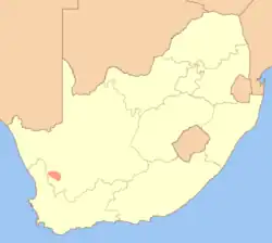 Lapeirousia oreogena has a fairly restricted distribution,[6][1] on the northern extremity of the Cape Floristic Region of South Africa.[1] It is found in clay soils in the Northwestern Cape region of South Africa.[7] Namely the Calvinia District,[2] to the Bokkeveld Plateau and the western Karoo,[9] and Nieuwoudtville.[6][1]