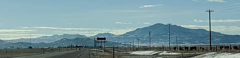 The range is prominently visible from Interstate 25 between Casper and Cheyenne. Interstate 80 and the Union Pacific Railroad cross the range between Cheyenne and Laramie on an outlying ramp of the High Plains called the "Gangplank".41°05′56″N 105°06′46″W / 41.09889°N 105.11278°W
