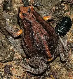 The large toadlet or great toadlet or major toadlet (Pseudophryne major) is a species of ground-dwelling frog native to eastern Queensland (including Moreton and North Stradbroke Island) and northern New South Wales, Australia.