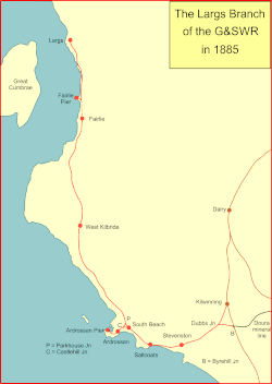 The first part was formed when the Ardrossan Railway was built, with the principal objective of facilitating coastwise export of minerals and import of goods to Glasgow, but it was only partly successful. The later Glasgow and South Western Railway extended the line to serve Largs, opening the line throughout in 1885.