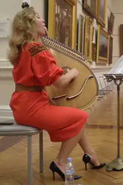 Larissa completed her master's degree in Music at the Kyiv Conservatory in Ukraine in 1992. She has performed in numerous festivals in Ukraine and Western Europe, including Latvia, Estonia, Germany and France. She has recorded with the SBS Radio and Television in Australia, to which she relocated, and has appeared in numerous venues there.[2] Musica Viva Australia,[3] Cafe Carnivale.[4][5][6][7] Among her more notable performances, in 1993 she was a laureate of the all-Ukrainian Bandura Festival and in 1994 played the bandura in Brussels with Roman Hrynkiv at the "All the World's Violins" Festival.[8][9][10] She has led workshops in singing and music at the Sydney Children's choir.[11]
